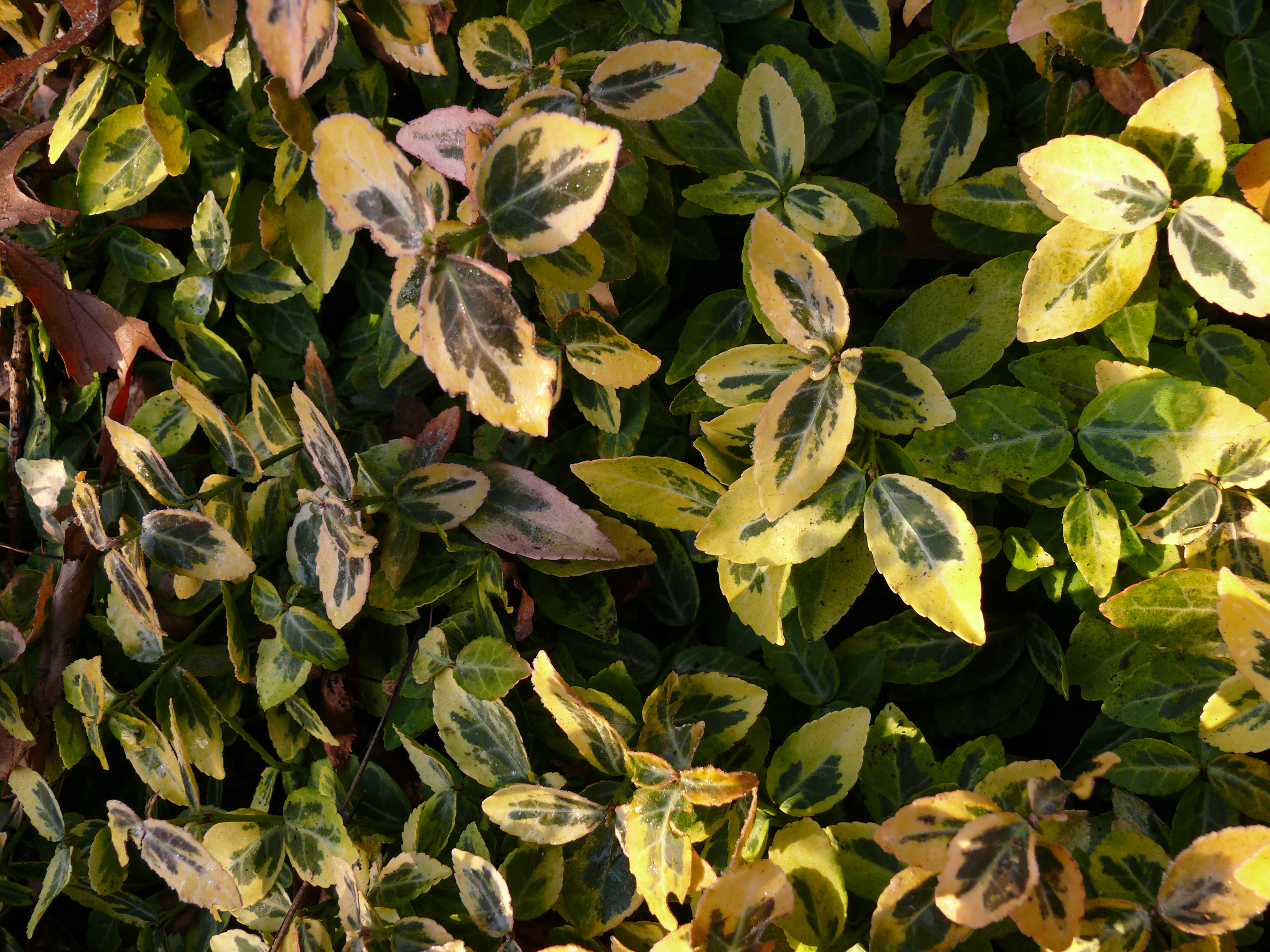 Euonymus fortunei 'Emerald'n Gold': in sun, height: 50 cm, width: 100 cm